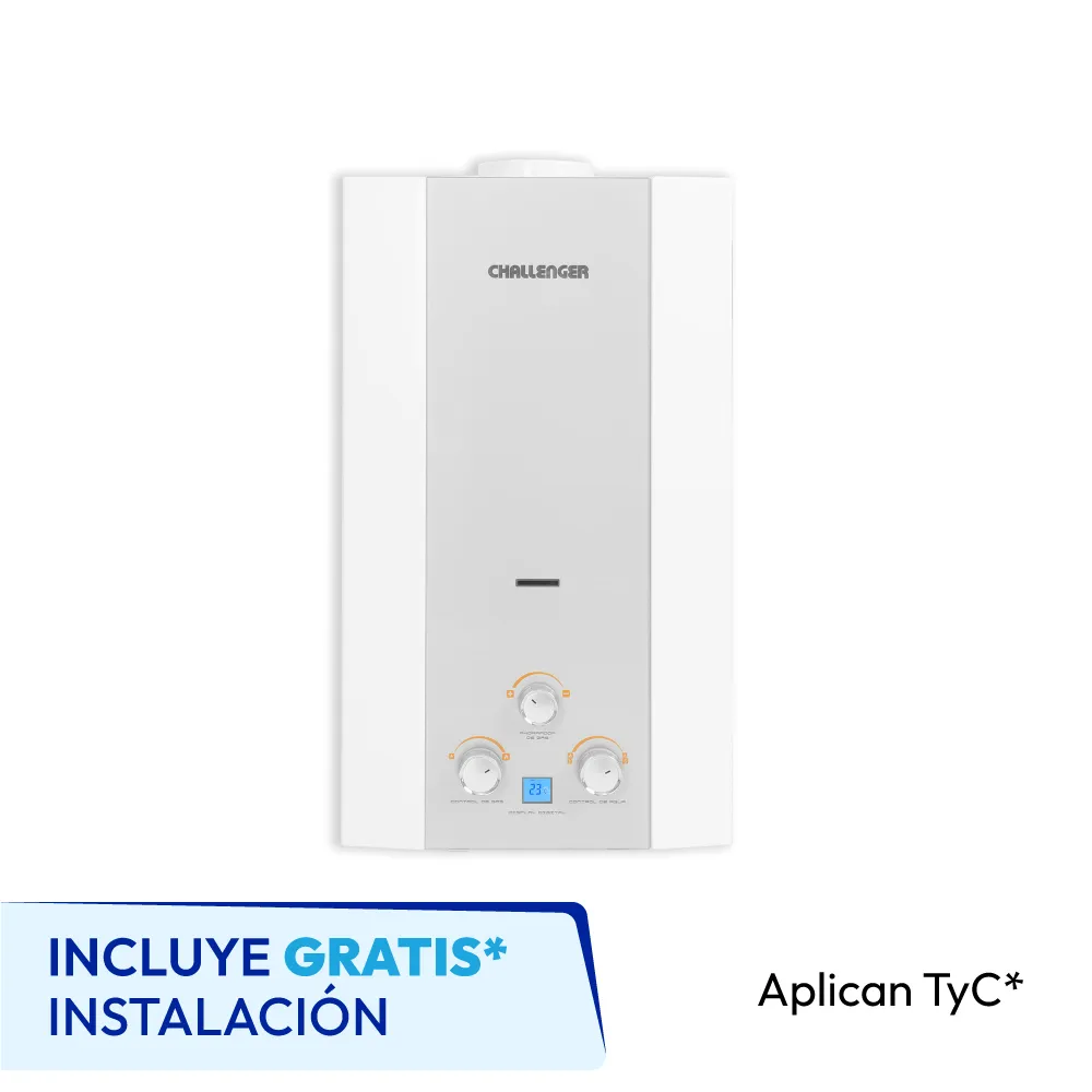 Calentador De Paso A Gas Challenger 10 Lts Tiro Natural Blanco Con Encendido